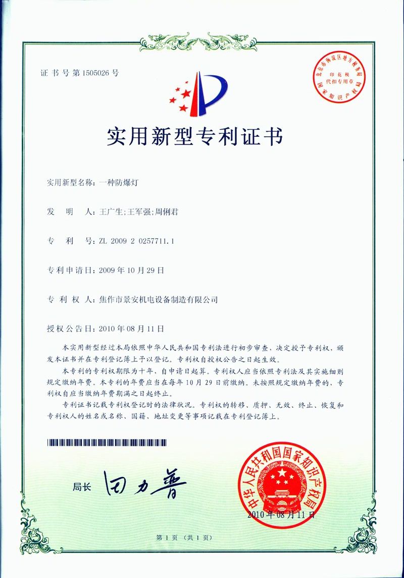 焦作景安公司始終堅持“以科技為先導,以市場為導向”的發展戰略,不斷進行新產品的研制和開發,在國家“六五”到“九五”期間,承擔和參與了國家多項科技攻關項目。并被中國電器工業協會評定為“質量可信產品”。特別是在礦用防爆燈領域,礦用隔爆型半導體(LED)照明燈具,2008年列入國家火炬計劃,獲2009年河南省工業和信息化廳的科技成果二等獎,并擁有多項國家專利。